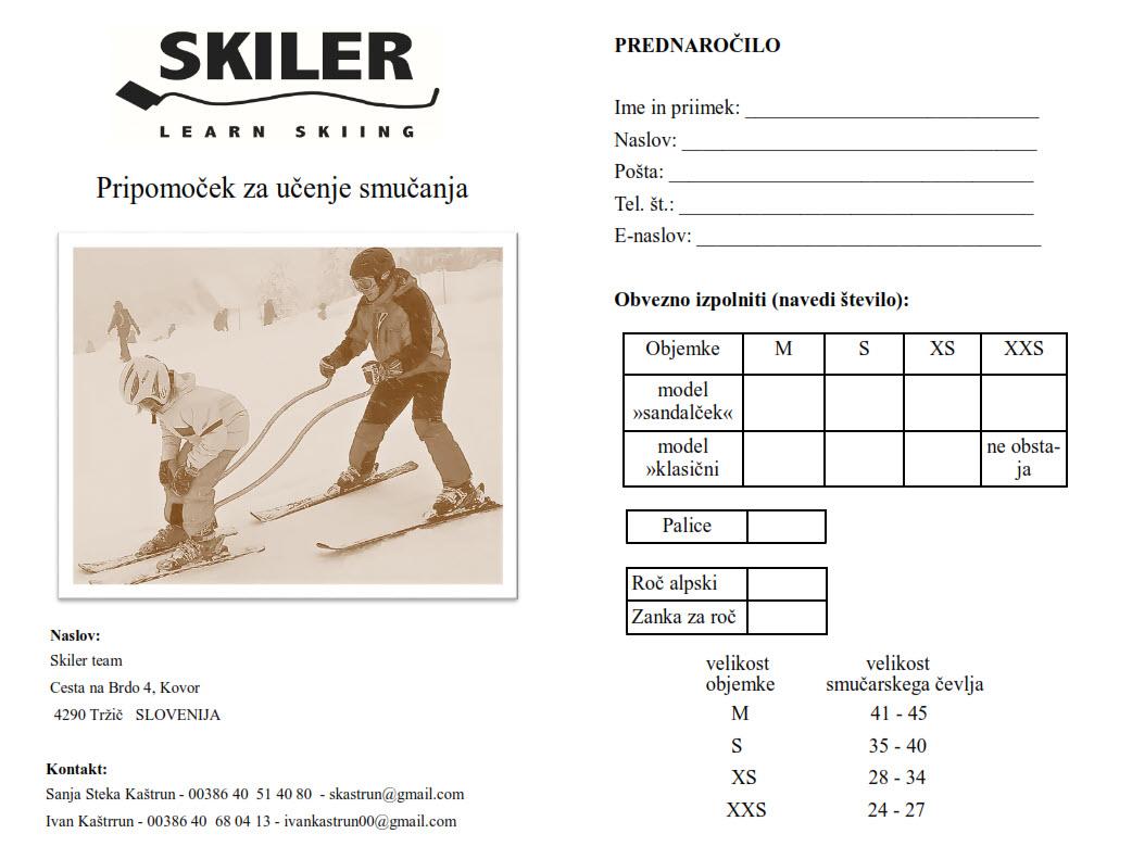 SKILER – pripomoček za učenje smučanja, lahko naročite preko priložene naročilnice ali pa nas kontaktirajte neposredno.